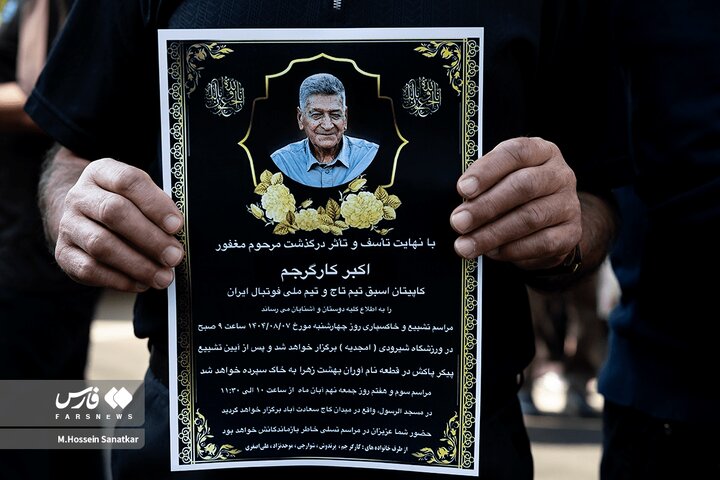 مراسم تشییع پیکر اکبر کارگرجم، پیشکسوت فوتبال ایران از ساعت ۹ صبح امروز (چهارشنبه) ۷ آبانماه ۱۴۰۴ در ورزشگاه شیرودی برگزار شد.