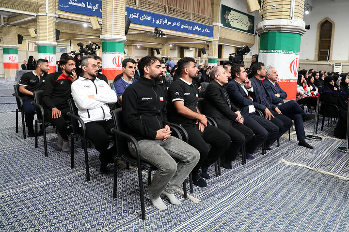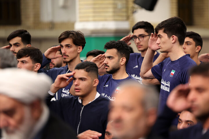 دیدار قهرمانان ورزشی و مدالآوران المپیادهای علمی با رهبر انقلاب؛ اهدا انگشتر رهبری به ملی پوش فوتسال؛ سلام نظامی ورزشکاران به رهبر انقلاب | تصاویر