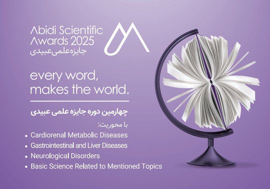 پذیرش مقالات و آثار پژوهشی چهارمین دوره «جایزه علمی عبیدی» از ۱۵ مهرماه ۱۴۰۴ آغاز شد. پژوهشگران جوان واجد شرکت در این جایزه میتوانند از ۱۵ مهرماه مقالات و آثار پژوهشی خود را در سایت abidiscientificawards.com بارگزاری کنند تا توسط داوران این جایزه مورد سنجش و بررسی قرار بگیرد.